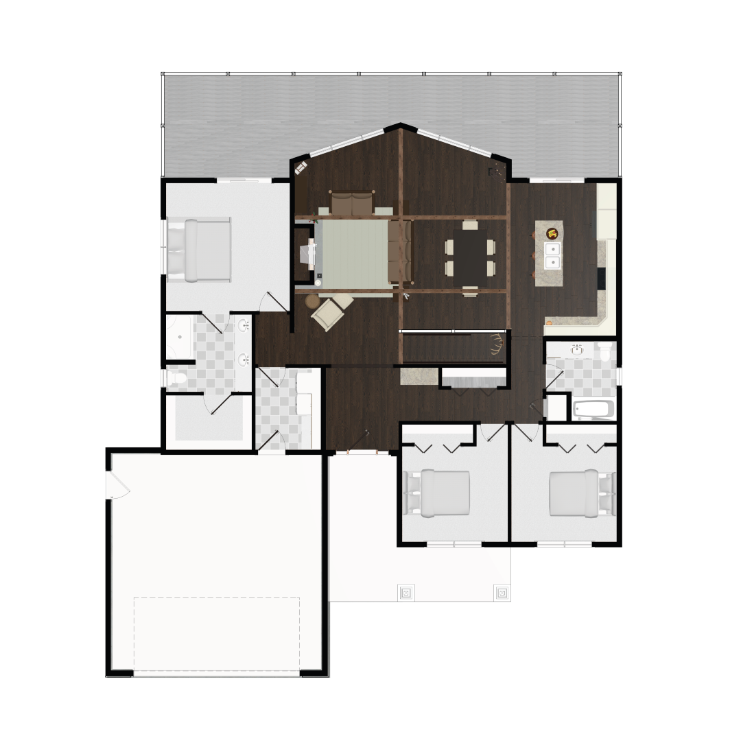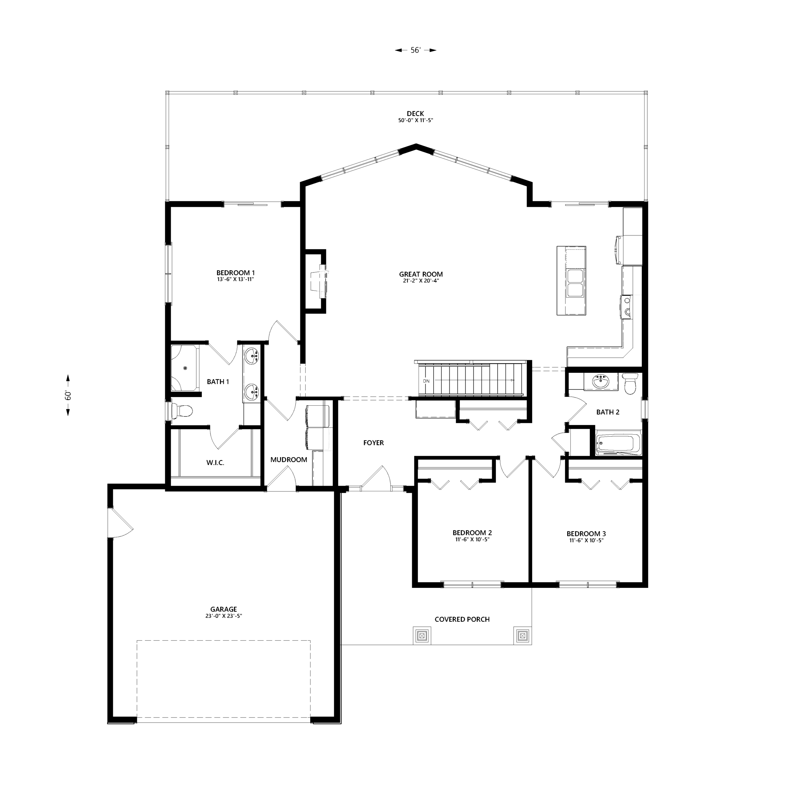 Recently redesigned, the Brule II is a modern take on one of our most-loved layouts. This 3-bedroom, 2-bath home features a split-bedroom design, giving the owner's suite added privacy along with a walk-in closet and ensuite bath.