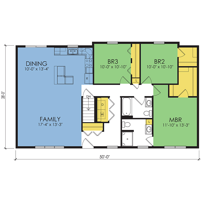 Return to SearchA part of our dream series, the tamarack floor plan features 3 bedrooms and 1.5 bathrooms with a foot print of 44x30 feet and 1342 total square feet of living space.