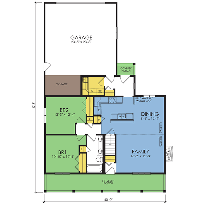 A part of our Wausau Originals, the Dakota floor plan features 2 bedrooms and 1 bathroom with a foot print of 40x62'8" feet and 1160 total square feet of living space. Floor Plan #WO608
