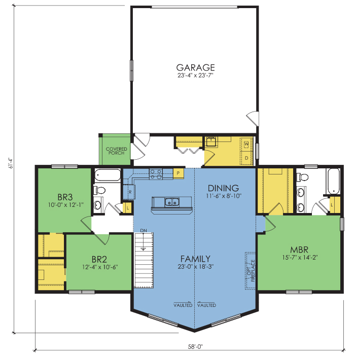 A part of our Wausau Originals, the Grand Haven floor plan features 3 bedrooms and 2 bathrooms with a foot print of 58x61'4" feet and 1664 total square feet of living space. Floor Plan #WO624