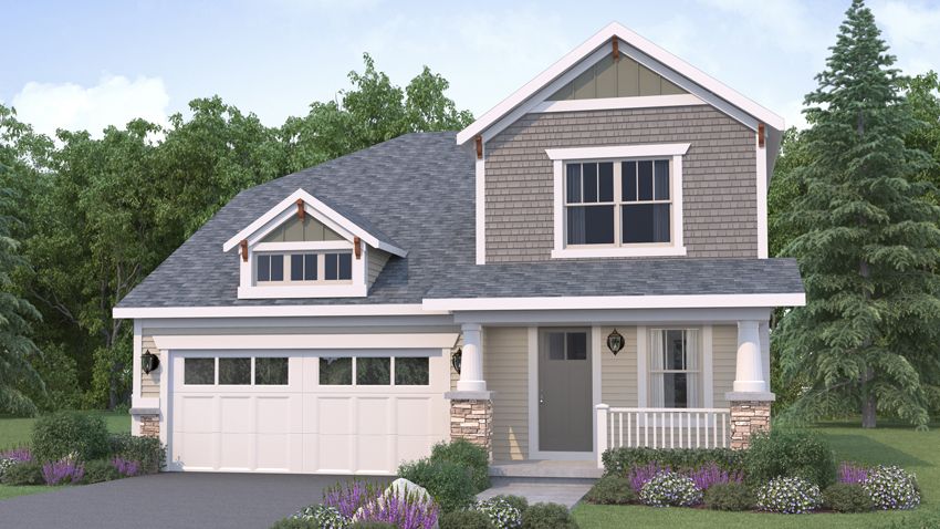 Exterior rendering of Jack Pine floor plan in the Country Exterior Style. 3 bed/2.5 bath floor plan Country