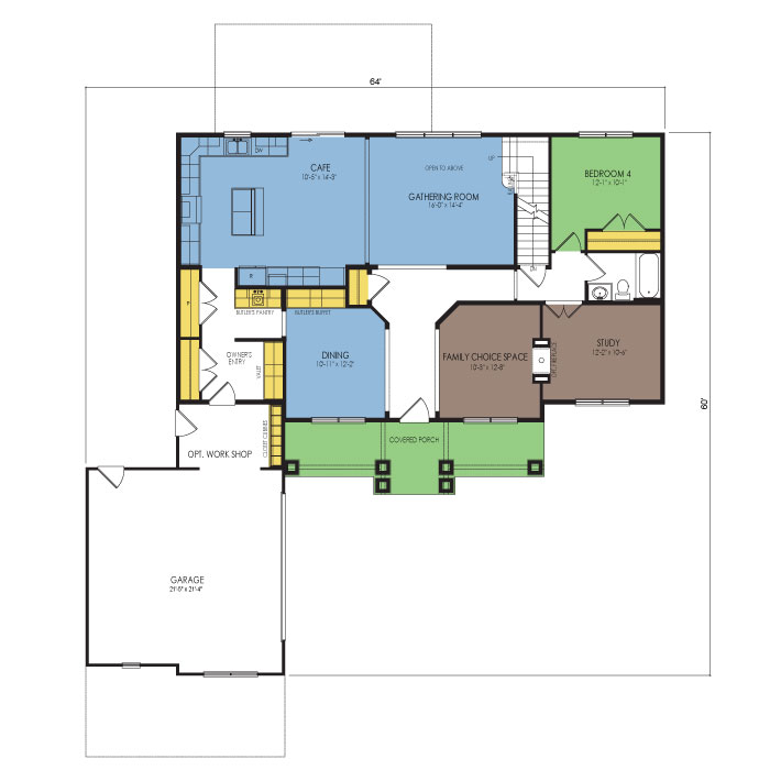A part of our Architect series, the Manchester 2 story floor plan features 4 bedrooms and 3 bathrooms with a foot print of 64x60 feet and 3076 total square feet of living space. Floor Plan #AR213