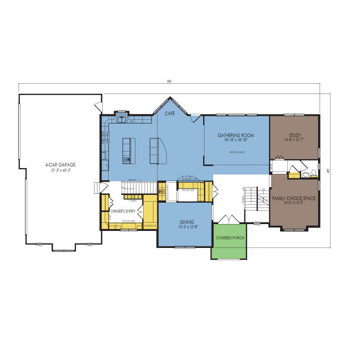 A part of our Architect series, the Newcastle 2 story floor plan features 4 bedrooms and 3.5 bathrooms with a footprint of 88x45 feet and 4115 total square feet of living space. Floor Plan #AR293