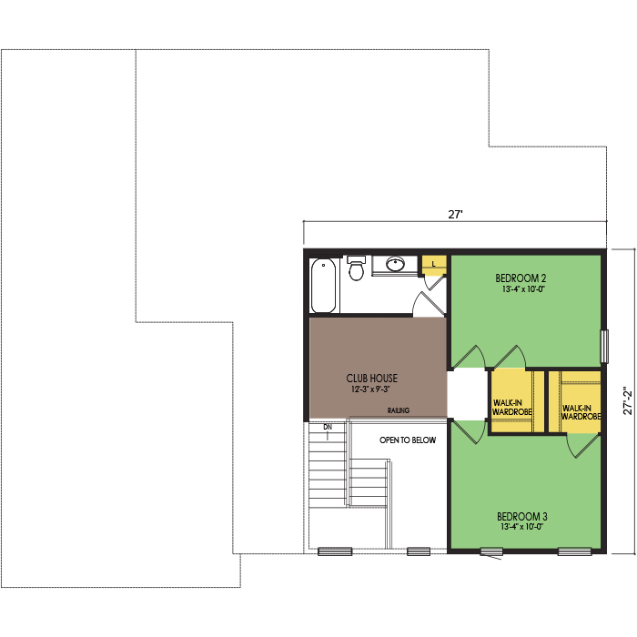 A part of our Resort Series, the Rainier floor plan features 3 bedrooms and 2.5 bathrooms with a foot print of 54x48 feet and 2203 total square feet of living space. Floor Plan  #RT348