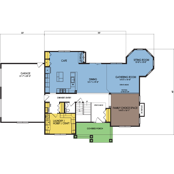 A part of our dream series, the tamarack floor plan features 3 bedrooms and 1.5 bathrooms with a foot print of 44x30 feet and 1342 total square feet of living space.